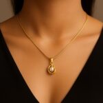 The snake-style gold chain adds a contemporary edge — sleek, close to the skin, and fluid in movement. Together, the pendant and chain form a minimal-yet-memorable ensemble that speaks of quiet luxury.