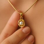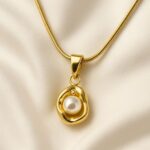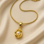 This radiant pendant — a silky orb of white pearl nested in a fluid, sculptural gold embrace — is the essence of serenity made wearable. Named Antara, meaning “the space between” in Sanskrit and Hindi musical tradition, it symbolizes the calm that exists between two notes, two heartbeats, two thoughts.
