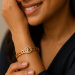 The bracelet’s appeal lies in its quiet opulence. It does not clamor for attention but draws the eye nonetheless—an effect only true craftsmanship can achieve. The central motif reflects balance, the side cutouts add rhythm, and the halo of crystals adds that sparkle synonymous with celebration.