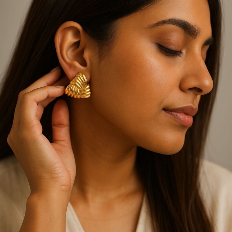 Its organic folds are meticulously sculpted to give a rich, dimensional look from every angle. Whether you’re walking under the sun or under chandeliers, these earrings shimmer with intention — never just shine. They’re a statement, not a shout. A memory, not a trend.